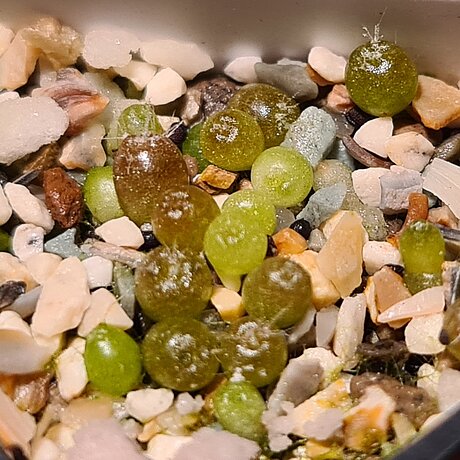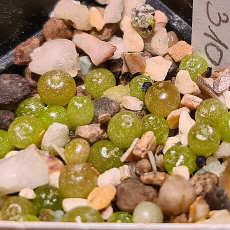 | Körper kugelig, sprossend, einzelne 4 – 5 cm ∅, hell- bis dunkel bläulichgrün | |
